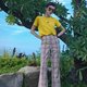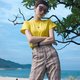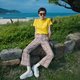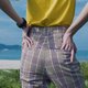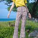 选用纯棉的复古格纹的印花,搭配90's复古小喇叭的款式
