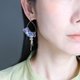 - 非常奢华地使用施华洛世奇水晶制作的人气耳环、耳夹。 紫色花朵款配上12月的诞生石的坦桑石。 链子是勾到耳后的设计,非常特别的款式。