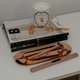 可放置烛芯剪、 灭烛罩、蜡烛钩,除了让蜡烛工具组能够收纳整齐之外,光是摆放着就让空间瞬间升级优雅的质感。