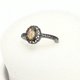 透视度高实心蛋白石戒指。小颗晶莹。但火彩足。喜欢轻巧小型戒指,或喜爱复刻设计的。最为适合。