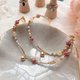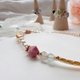 红纹石象征稳定与爱,摩根石散发柔和能量,粉奥宝与贝珠相映成光,让整体更添优雅气息。
