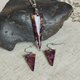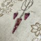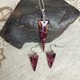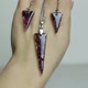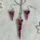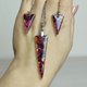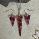 一套三角形耳环和吊坠,由环氧树脂制成,饰有干玫瑰花。酒红色珠宝套装。