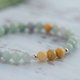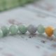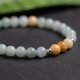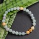 这款翡翠手串,以青绿色的翡翠为主,至少会有三颗黄翡,是我们很喜欢的颜色组合。