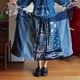 藍色系棉麻面料結合藍染拼布制作此款拼布裙