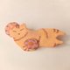 I made a brooch with an illustration of a sleepy tabby cat, probably in the middle of the sun.