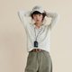 大身和条纹分别由两种不同肌理的UPW棉混纺纱线织制