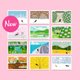 一组 12 张,以柔和的色彩描绘了 1 月至 12 月的里山四个季节的风景和猫。