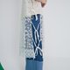 搭配的裤子为双色不收边牛仔宽裤