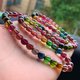 **〔 简介 〕:**巴西老矿料 彩虹碧玺绕三圈手链 纯净油亮 浓艳亮丽 鸽血艳桃红 宝石闪电蓝 翡翠宝石绿 芬达橙黄色 经典色彩 完全搭配 高贵典雅 遇到珍惜哦 规格:7mm 重量:42克 关注店铺送优惠券!