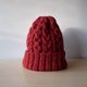 帽身织入了爱尔兰传统的艾伦花纹(Aran Pattern)。外型简约,是不分性别与年龄都能轻松驾驭的百搭款式。深邃的红色非常适合作为穿搭的亮点,与单色系或自然色系的服装更是绝配。