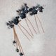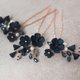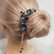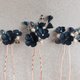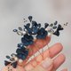 Set includes 3 hairpins with navy colored flowers. You can also choose a variation with a chain. The chain with buds and cubic zirkonia has a clasp with which you can attach the chain from any convenient side