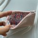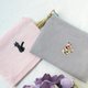 Hand embroidered back of animals about 5cm on cotton linen. The outer fabric is taut and firm. The inside has a divider to make it more functional.