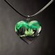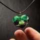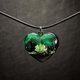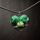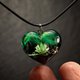 手工制作的心形吊坠,采用黑色角梁木和树脂制成,内有干粉红色洋甘菊。