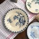 这是一个迷人的法国古董陶瓷盘,来自于GIEN 的Chardons 蓟花系列,以蓝色的蓟花装饰,属于典型的 19 世纪晚期 Gien 产品。