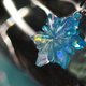 Work ID: 3779 / American glass / Approximately 37 x 32 x 8 mm / Blue white / transparent / Iridescent (lame) processing / Dichroic polarized glass processing / Marble processing / Swirl chain Stainless steel 55cm /-