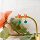 约 5mm 的金木犀押花以树脂逐一加工,再将三朵花聚集成一束,呈现细致可爱的立体感。