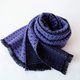 以接近黑色的午夜蓝为基底,编织出带有灰紫色调的紫罗兰色图纹。布幅约有三分之一的织纹不同,色彩的呈现也富含变化。正面与反面的花纹与氛围有所差异,因此围巾能透过不同的佩戴方式展现多样风貌。虽然是窄幅设计,但喀什米尔特有的蓬松质感,使其长度足以让您在颈部围绕两圈,或打结佩戴。流苏边缘已固定,无需担心脱线。鲜艳的紫罗兰色,能为单调的冬季穿搭增添一抹亮点。