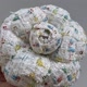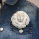 这款山茶花胸针采用带有虹彩纤维与亮片的白色布料制作。能为您喜爱的洋装、外套或包款增添典雅与时尚气息。