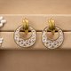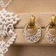 - 美国 Monet 品牌古董,金边白色镶珠镂空门环耳环,专利无痛耳夹