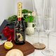 在庆祝乔迁的场合中,一个精美的香槟瓶,上面雕刻着乔迁者的人像,栩栩如生。香槟搭配着精美的对杯,两者都显得格外奢华和独特。