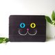 这是一款三折笔记本式 TPU 软壳 iPad 保护套,带有微笑的黑猫脸,可存放 Apple Pencil。