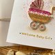 购买手工卡片 - 婴儿卡 - 欢迎宝贝女孩。问候卡。独特的绗缝技术设计。库存只有一件。