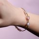 只要手链绕在手上,两边的扣子对应并轻轻按压便可扣住,不会影响其他的金属饰品。