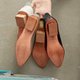 Classy and comfortable shoe. Calfskin and finished with a leather wrapped heel and leather sole.