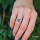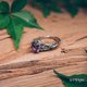 这款独一无二的订婚叶子戒指,拥有闪亮的小枝设计,点缀有一颗大型紫水晶和仿钻石叶子。它是一款无限扭转银质树枝订婚戒指,大胆展现自然风格,象征着永恒的爱与自然美、优雅与风度。