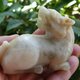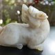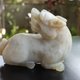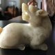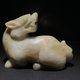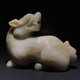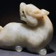 白玉整料为材,圆雕螭龙回首后望,身姿矮伏,四肢蜷曲,形象生动,充满动感,宽口阔鼻,老陀工钻痕及解玉砂痕迹明显,开丝细密。整体造型规整,雕刻线条圆润流畅,背部及身侧沁色自然,似光影斑驳,气息古朴,从雕工上看雕琢精致细腻,线条流畅自然,工艺娴熟,尽显工匠之高超技艺,适宜欣赏把玩及典藏。