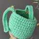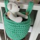 Hanging basket. A useful thing for a children's room, it can be hung on the crib and folded diapers, toys and everything that should be at hand) The basket is roomy and durable, all parts are securely fastened. Height 20cm, diameter at the top 26 cm, bottom 15 cm. Knitted from 100% cotton. The color is milky. May vary depending on your monitor settings