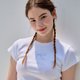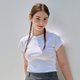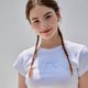 合身短版上衣 / 短袖盖肩 / 罗纹棉质布料 / 白色含彩色印花