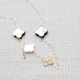 串联蕾丝、白蝶贝与黑蝶贝的花卉造型,缀饰而成的项链。