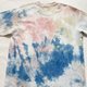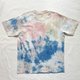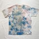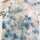 此款 T 恤先以泥染的绞染技法,层层叠加出丰富的色彩,最后再施以蓝染的绞染工艺制作而成。