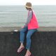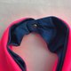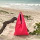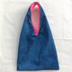 Indigo-dyed canvas fabric and fluorescent pink polyester fabric are used