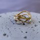 戒指上的波浪线条不对称地镶嵌着锆石,并在其中一半施以讲究的金色电镀处理。