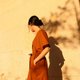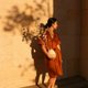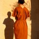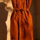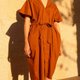 Kimono-inspired cotton dress that features V-neck design both on the front and at the back,seam pockets, and a self-tie. Made with summer-weight cotton in caramel. No lining.