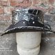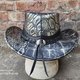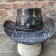 这款独一无二的手工制作的皮革牛仔帽具有醒目的黑色和金色仿古鳄鱼皮图案,可提升您的西部风格。