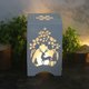 **魔法森林LED烛光金属USB灯饰系列,雾白色外型下,暖色灯光透过一层雷雕剪影,呈现温馨雅致的画面,匠心独妙的设计,雷射切割与金工艺术的完美结合,适用于新屋贺礼,生日礼物,圣诞礼物,情人节礼物,店面橱窗装饰,婚礼布置、或当小夜灯都非常适合哦!内含USB接头,方便携带外出使用,利用无线遥控器来调整灯光和色彩,以红、绿、蓝三原色组成,当中配置的LED晶片可组合出多种色彩,颜色丰富多变,突破传统,绝对是视觉上的新体验!LED均内置红外线技术,连接范围在无阻隔的情况下可远达3-5米,操作方式非常简单,只要使用无线遥控器,就能操控LED灯“亮度”、“颜色”与“情境模式”,使用者可完全控制灯光颜色,营造出美丽又实用的情境氛围。**