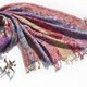 ▲喀什米尔靠近喜马拉雅山,为了对抗特殊的酷寒气候,刺绣羊毛是喀什米尔利用当地自然环境发展出来的一种细致的工艺, 当地海拔高,水的沸点低,早晨在太阳上升时,将羊毛制品,放入融化的高原雪水中浸泡,之后加热沸煮。到了傍晚太阳下山时,再把羊毛制品在月光下晒,经由繁复工续后的产品, 不但可以清除掉一些杂质,羊毛产生收缩,纤维之间更加地紧密,最后经由妇女手工编织及刺绣,呈现一件件颜色及绣法独特的织品