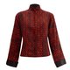 鲜明突出地呈现在黑色丝绸面料上的红色士多鐡闸雕刻细节,有一种神秘的氛围。SPARKLE by KAREN CHAN旗袍领选用黑色面料,搭配黑色缎面翻袖,尽显俏皮少年气。