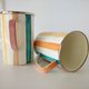将彩色珐琅釉料以直线条样式呈现,与暖白底色交错搭配,宛如七色彩虹般俏丽,在每种器皿上展现缤纷可爱的样貌!