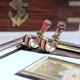 这对耳夹的深红色有种神秘感,上面再有一条金色的扭纹,非常精致。夹式耳环喔,也好好照顾一下没有耳洞的女孩。这对的实物的造工非常细致,线条圆滑,值得珍藏。