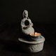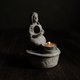 人偶看似坐着放松的姿态,但却无法肯定那是一个稳定的状态,她头微微仰着,可能来自于肩膀不自觉的用力,她内在仍有想紧抓的什么,可能因我下意识也发现了这件事,于是我将她的内在空间整理了出来,尝试让她保持在一个空的状态,因为在这样的状态下,她显得疏离。