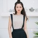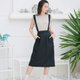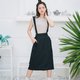 - Overall Linen Skirt With Adjustable Stripe and Topped with button-closure Wooden button / Black Color
