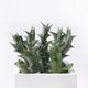 植株小巧玲珑,肉质茎长满龙角状突起,整体呈现出一种灰绿色,表面会有紫褐色的花纹,茎干上面有尖刺凸起来,看起来很坚硬其实摸一摸它还是很柔软的一点都不刺!开花时颜色为深褐红色,像星星一样,特别的是花朵有股特别的腥臭味,借以吸引蝇类访花授粉。