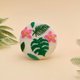 这款胸针上绣有如夏威夷等热带地区盛开的龟背芋等叶片与鸡蛋花。