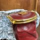这款 Givenchy 皮革收纳盒呈现优雅的酒红色外观,搭配金色边框设计,展现高级奢华感。盒盖上镶嵌着品牌标志性的金色 “GG” 图案,底部刻有 “Givenchy” 字样及 “MADE IN SPAIN” 的制造标识,品质精致。盒子尺寸为 6.5cm x 6cm x 5.5cm,结构小巧便携,适合存放硬币、饰物或蓝牙耳机等小型物品。内部采用与外观相呼应的酒红色内衬,触感柔软,提供良好的保护。