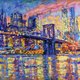 纽约绘画原创艺术画布艺术品布鲁克林大桥日落 油画原作 NYC