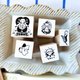 这是代表“开心”情绪的印章。 尺寸小巧,也能盖在 2 厘米以上的便利贴上 尺寸:2×2 厘米 高 2.4 厘米